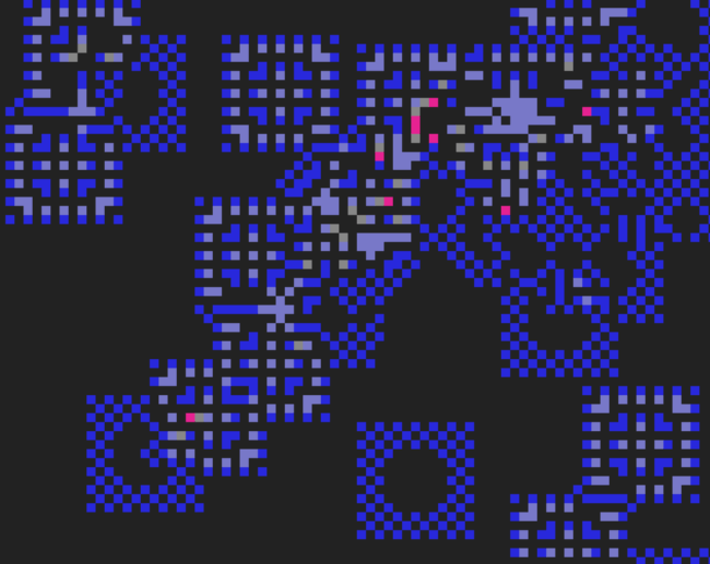 Cellular automata are a way to model natural processes (among other things) by defining discrete "cells" and setting up simple transition rules that affect the states of each cell over time. This was my attempt to extend John Conway's Game of Life (which involves only 2 cell states) into something with more cell states (colors) and more interesting ways of setting up rules.