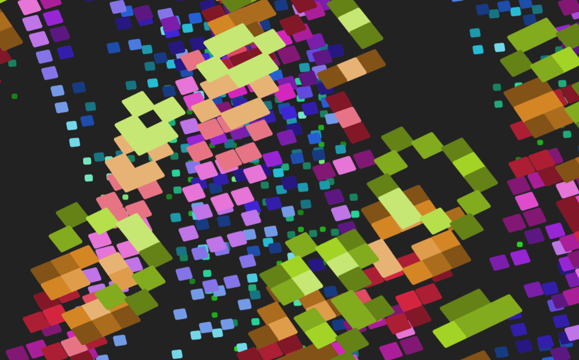 Another product of my interest in cellular automata (see above). I took a 2D Game of Life grid and 'echoed' it into three dimensions. The shapes are rendered to the canvas using an awesome library called ZDog.