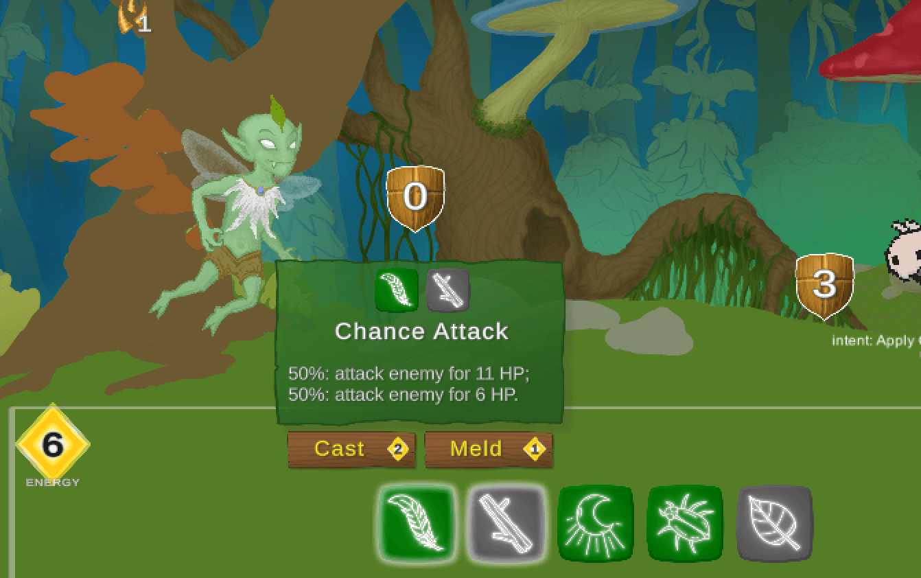 See brief My current game project in the making - a roguelike deck-building game with a twist on the card dynamic, set in a cartoonish forest with lots of spells, magic runes, and giant mushrooms. I'm using it to level up my Unity skills, and as an excuse to do more drawing. It's coming along slowly but surely! Go Here to play a test build and provide feedback!